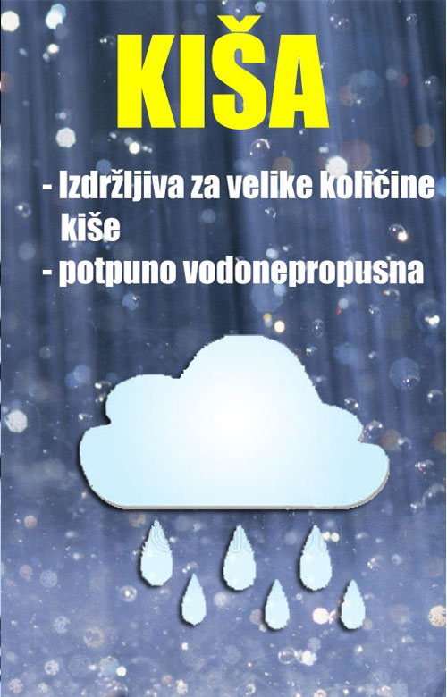 -vodootporna, pruža 100% zaštitu od velikih padalina, idealna je zaštita od agresivnog utjecaja morske vode i kiselih kiša